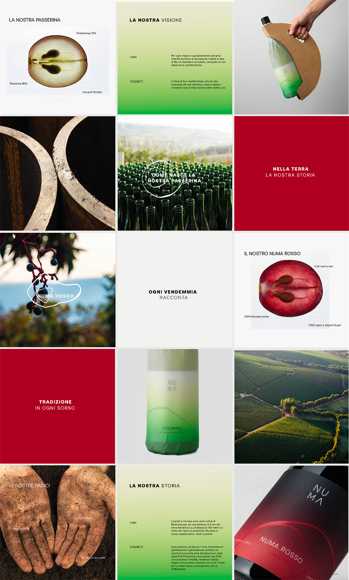 The Numa wine brand concept represents a strategic exploration within the wine industry, crafted under a tight deadline to emphasize unique positioning, visual identity, and a comprehensive application system. This project successfully merges modern aesthetics with deep-rooted regional traditions, creating a distinctive and cohesive visual language that permeates both packaging and communication strategies. By integrating contemporary design elements with traditional influences, the Numa brand stands out in the market, offering a fresh yet familiar experience to consumers.